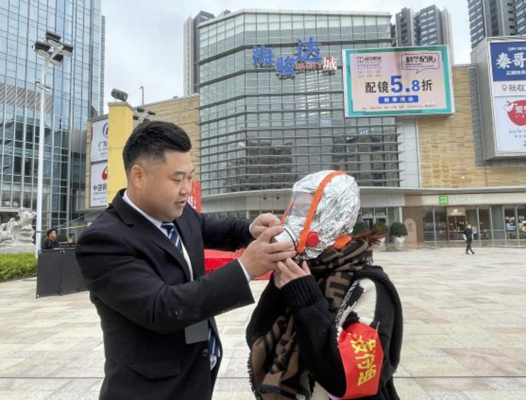 通過講解火災給人生造成最大的危害是煙氣,教育大家火災逃生注意事項以及防煙面罩等消防器材的正確使用方法。